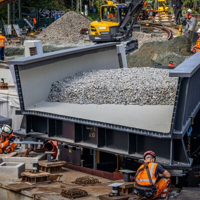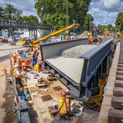 Im September und Oktober 2025 werden im Rahmen einer weiteren Sperrpause die neuen Überbauten für die S-Bahn-Gleise eingehoben, hierüber werden wir seperat informieren.
