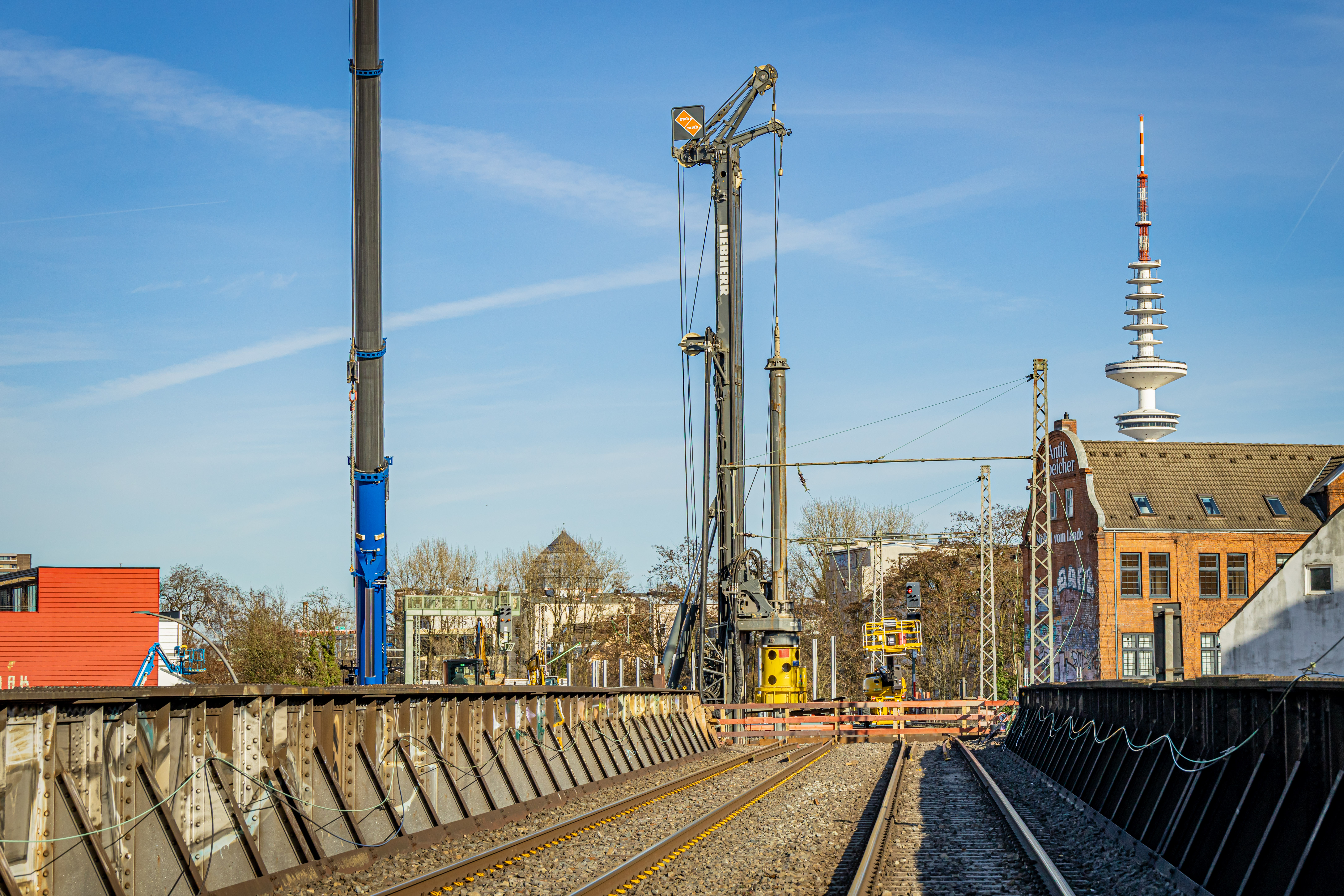 Seit Ende Februar sind im Bereich der Sternbrücke die Gleise der Hamburger Verbindungsbahn sowohl für den S-Bahn als auch für den Fern- und Regionalverkehr gesperrt. Diese Unterbrechung des Zugverkehrs ist notwendig, damit die Bohrungen im Bereich unter den Gleisen hergestellt werden können. Die in diesen Bereichen zuvor errichteten Hilfsbrücke wurden für diese Arbeiten temporär ausgebaut und werden nach Abschluss der Arbeiten wieder eingesetzt.
