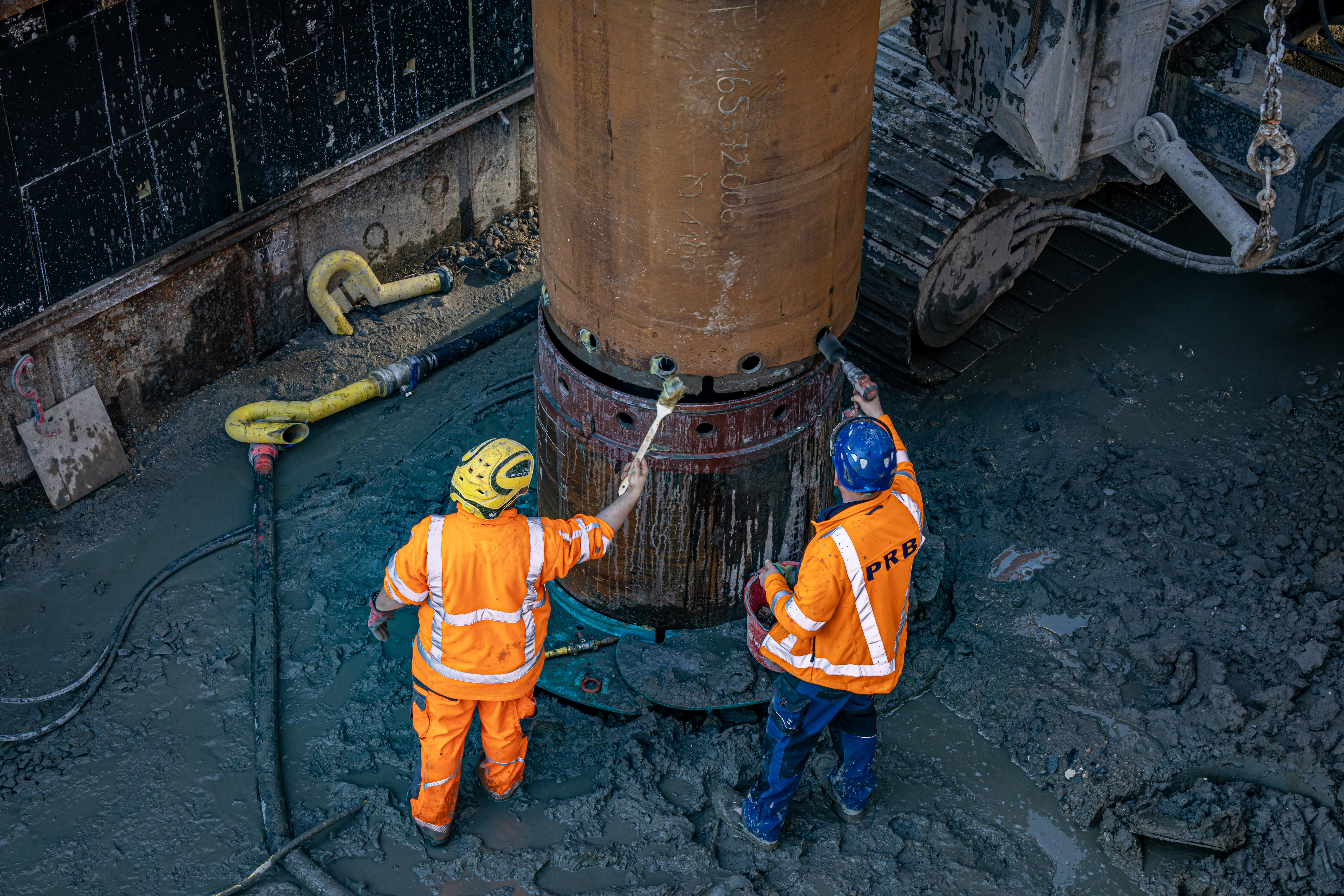 Blick auf den Bohrkopf und auf das Bohrgerät. -
